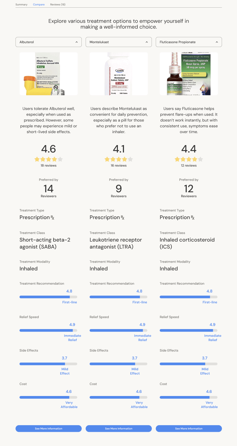 Problem: The original treatment page was dense, clinical, and visually flat. Users felt unsure where to look first.