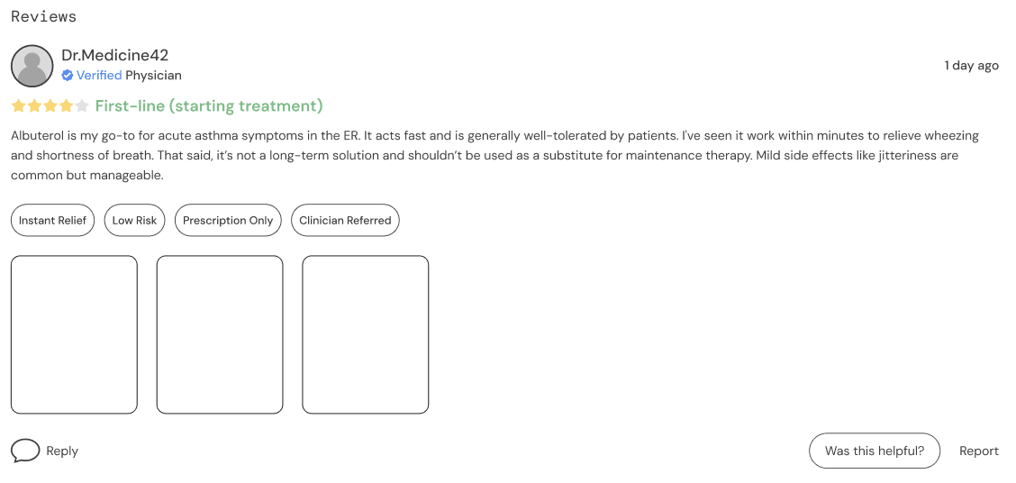 Role-specific indicators (i.e. “Verified Emergency Medicine Physician”) for instant credibility