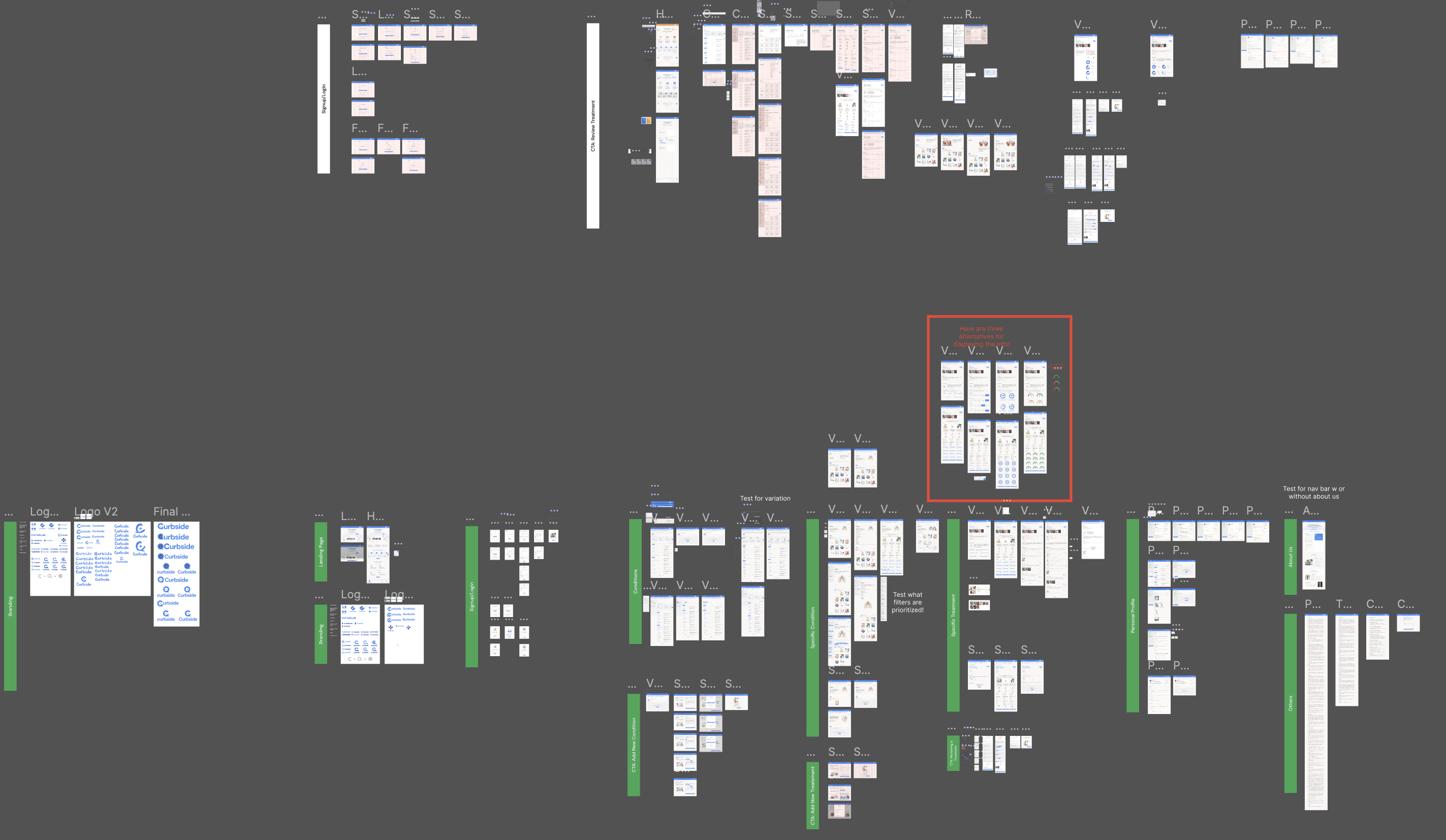 I explored 100+ variations across navigation, filtering, treatment cards, and onboarding flows before narrowing into three key directions.
